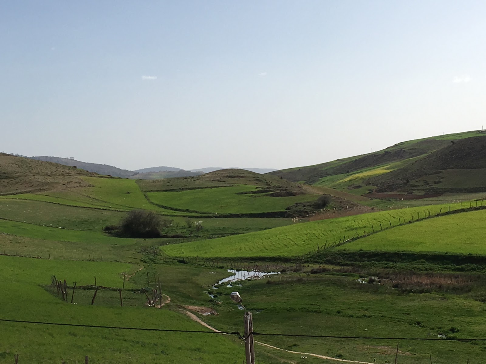 landschap van valleien, dan weer door ceder bossen waarna de weg weer een